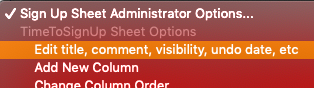 - Using the administrator drop-down menu above the sign up sheet, select "Edit title, comment, etc."