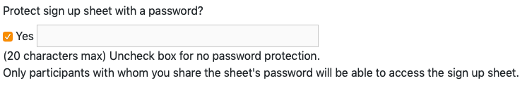 - Uncheck the "Yes" box below the text "Protect sign up sheet with a password?"