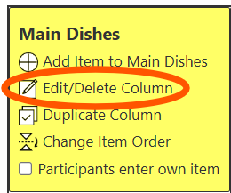 - Press "Edit/Delete Column" in the box at the top of the column.