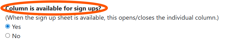 TimeToSignUp Account Admins can close a column so that participants cannot sign up for anything in the column.